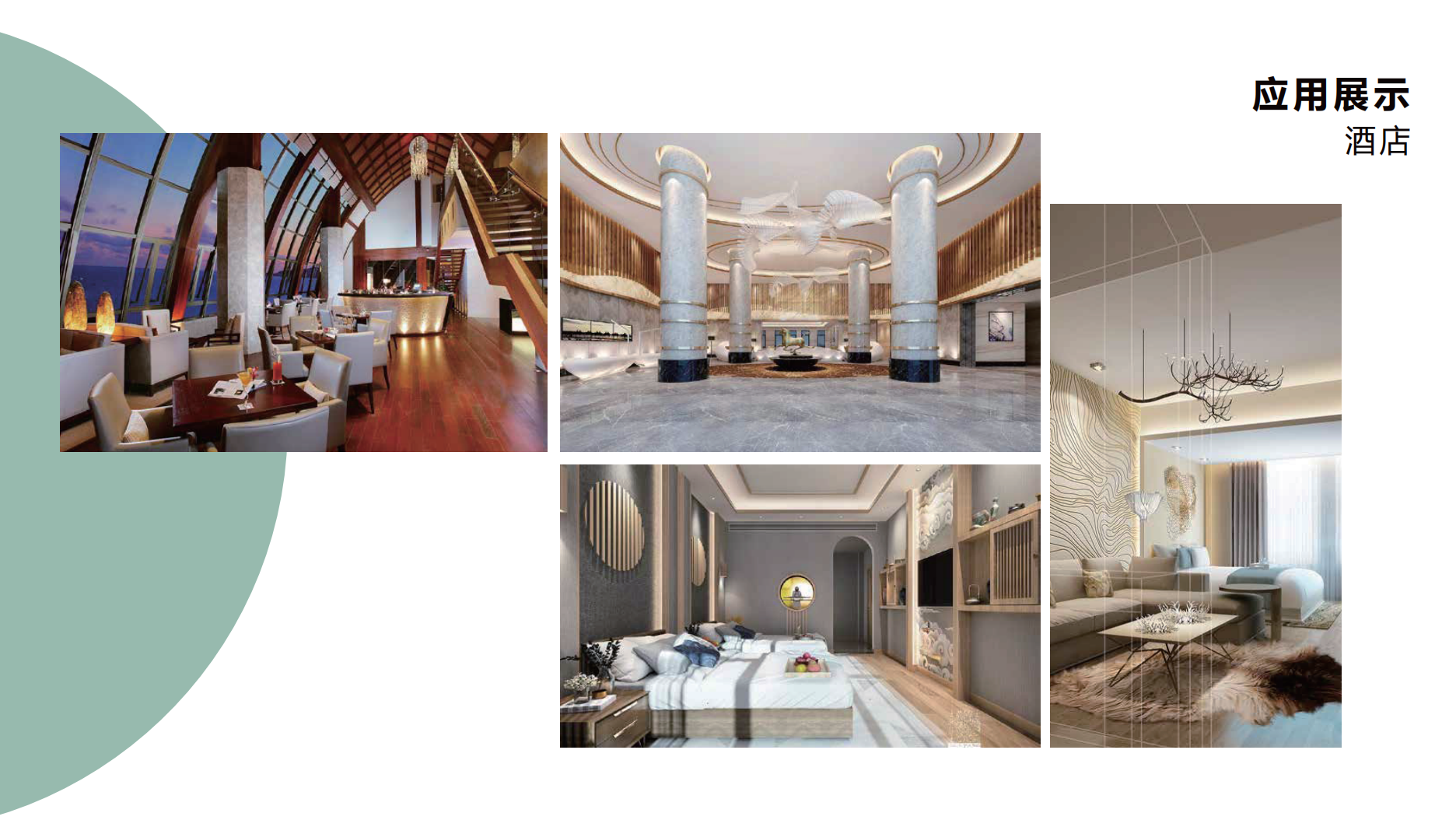 品牌应用:高档商场、星级酒店、品牌店面、商务中心、机场大厅、高端会所、办公区域、汽车 4S 店、CBD 写字楼、银行大厅